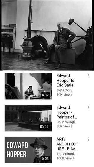 Страница YouTube с результатами поиска по запросу «Edward Hopper». Конец 2017 года