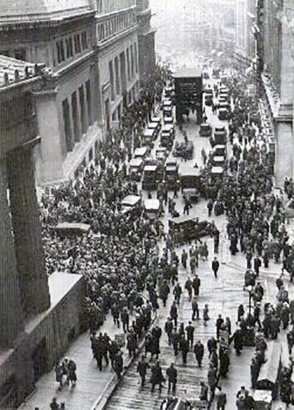 Толпы перед зданием биржи на Уолл-стрит, 1929