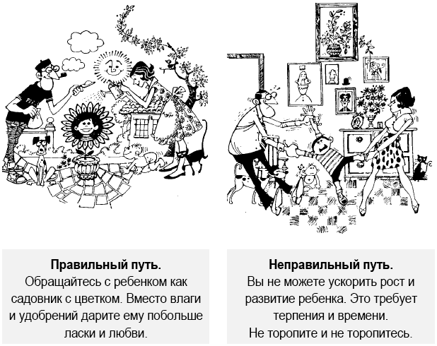 Неэффективное управление душевным миром можно назвать «этот, как его – волюнтаризм» (помните реплику Юрия Никулина из х/ф «Кавказская пленница»). На рис. 4 справа изображен неправильный путь воспитания, т. е. здоровый душевный мир человека не терпит прямого вторжения.