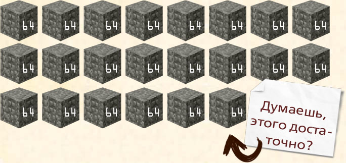 Правда, классно, а? Масток тоже так посчитал. Так появился наш проект. К тому же так мы сможем использовать нашу гору каменных блоков.