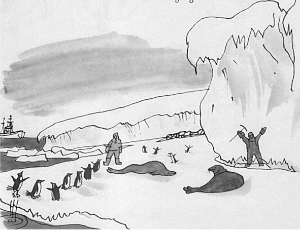 На другом, правом берегу ручья на открытом сухом месте тонкой проволокой огорожен прямоугольник. Сюда заходить нельзя. Здесь будет метеорологическая площадка. А метрах в тридцати от площадки, ближе к берегу ручья, дощечки на колышках с надписями: «Метео», «Медицина», «Океанология». Это значит, что здесь будут установлены метеорологический домик, домик, где будет жить и работать врач станции, домик, где будут океанографическая и гидрохимическая лаборатории.