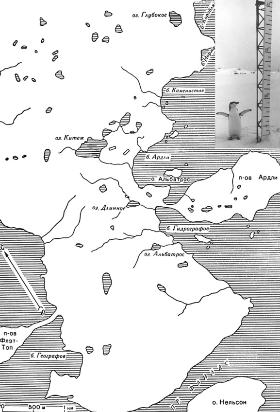 Озеро Китеж (размерами 580 м на 280 м, глубиной до 10,9 м) является источником пресной воды для станции.