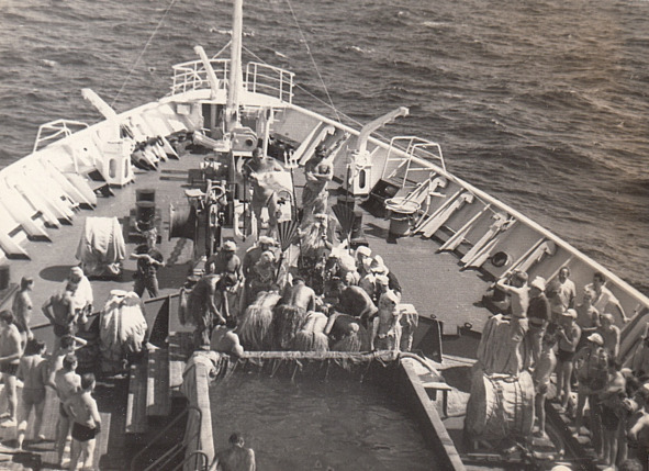 Но вот дошла очередь и до нашего судна. Завели шланг и бункеровка началась. От «Зубова» отошла шлюпка с нашими представителями и волейбольной командой. Проиграли. На прощанье нам подарили бочку рыбы. Три дня у нас был «рыбный день».