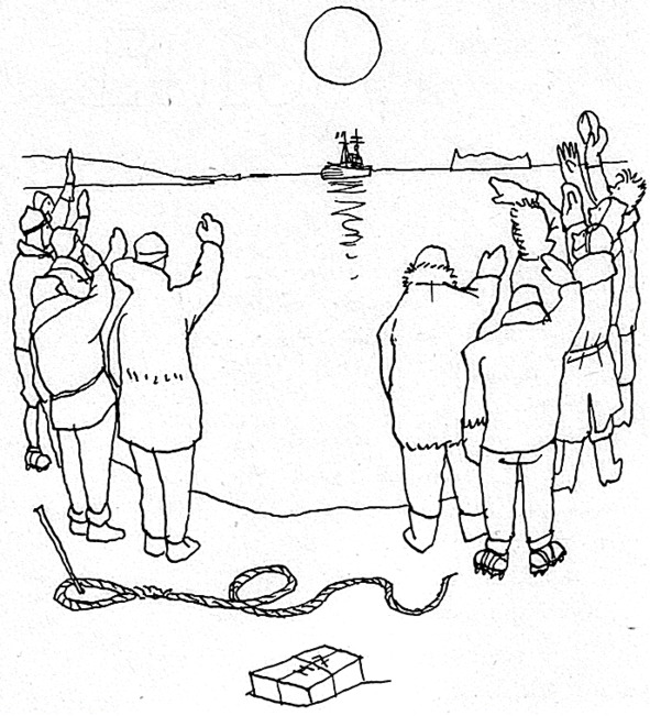 Я с моим соседом—метеорологом, еще долго стоял на берегу, вглядываясь в ночной мрак, стреляя из ракетницы вслед ушедшему судну. Станция спала.