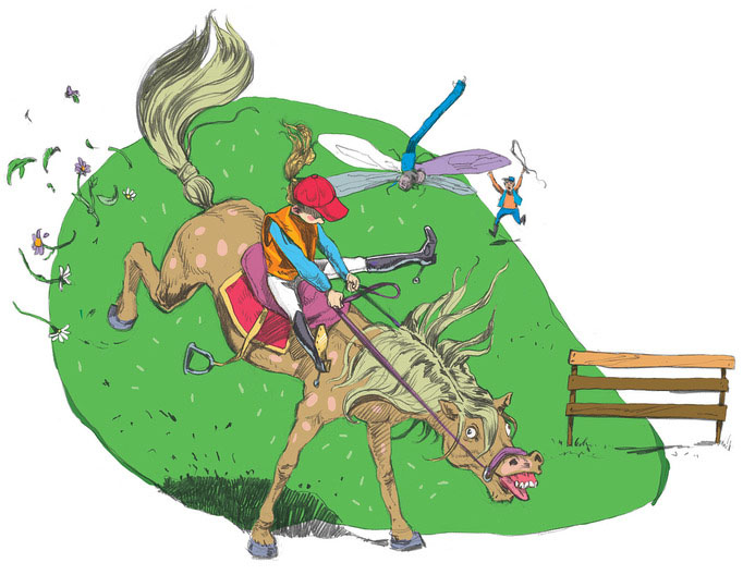 Маршал, который мирно щипал траву, даже не вздрогнул – легкая как перышко Белла, видимо, не вызвала у него ощущение всадника. Но когда девочка вонзила ему шпоры в бока, Маршал от неожиданности подпрыгнул, захрапел и рванул в неизвестном направлении.