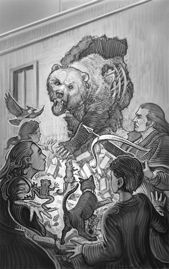 И вдруг ближайшая стена проломилась. Через дыру, раскидывая камни, ввалился медведь-мертвец. В боку у него зияла огромная дыра, и оттуда во все стороны хлестал желудочный сок. Намерения у медведя были явно не мирные.