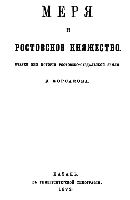 Корсаков Д. А. Меря и Ростовское княжество: Очерки из истории Ростовско-Суздальской земли. Казань, 1879