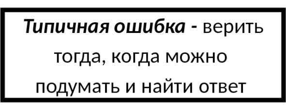 С другой стороны, провести проверку «отвечабельности» вопроса стоит и еще по одной причине. Она проста: умный человек может позволить себе верить только в том случае, если знать принципиально невозможно. Во всех остальных случаях такой человек либо знает ответ, либо честно признается (хотя бы себе самому), что этого ответа не знает. А верить в тех вопросах, в которых можно просто узнать ответ – это, простите, для думающего человека дурной тон…