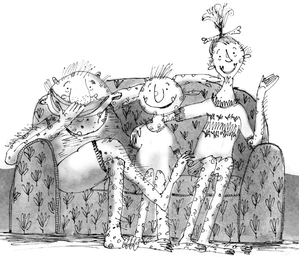 Миссис Приддл спряталась за Уорреном. Тролли, не дожидаясь приглашения, ввалились в гостиную, втиснулись втроём на один диванчик и почувствовали себя как дома.