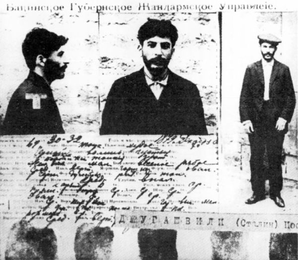 Фотодокумент, появившийся во время преследования царской жандармерией Джугашвили (Сталина) за революционную деятельность. На фото надпись: Бакинское Губернское жандармское управление.