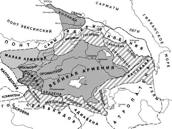 Закавказье в II–I вв. до н. э. (Карта из т. 2 «Всемирной истории». М., 1956 г.)
