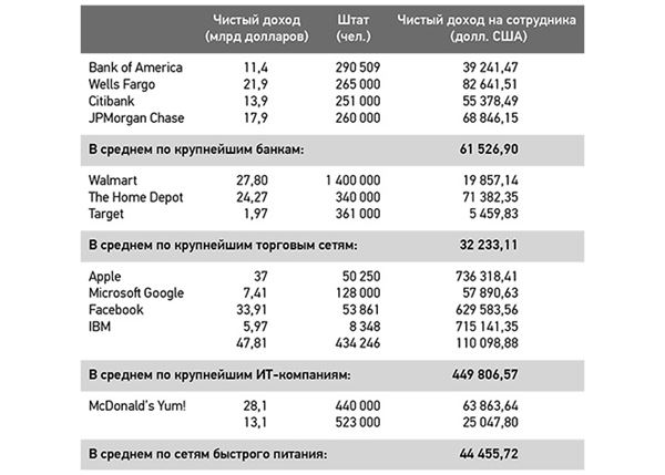 Таблица 1.2. Сравнение финансовых показателей крупнейших секторов экономики США (2013)