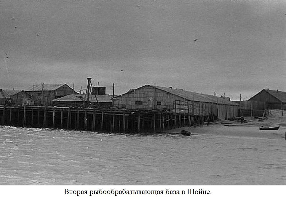 База №1 и база №2 Канинского рыбозавода (начальники – Кузнецов и Боголепов). На этих базах кроме самих причалов с кранами, куда шла выгрузка с рыболовецких судов, было много других необходимых хозяйственных построек для переработки и хранения продукции.
