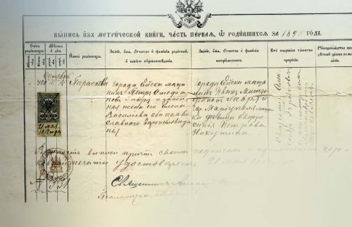 Родители: Пётр Степанович Гавря и законная жена его Елена Васильевна Пущина, оба православного вероисповедания. Таинство крещения совершили священник Александр Бровкович, псаломщик Георгий Ермаков