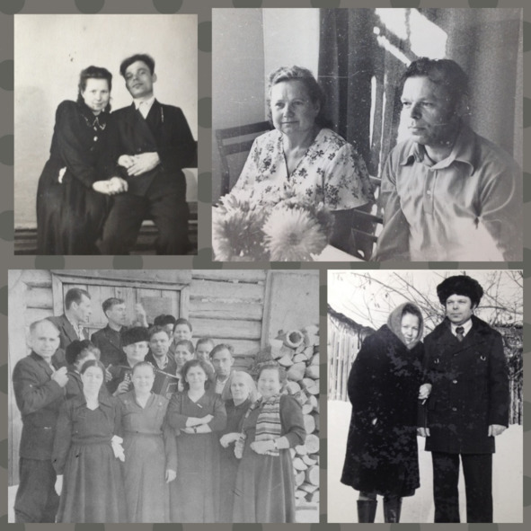 Верхний ряд (слева направо): молодые мама и отец; мама и папа на юбилейном вечере в честь 50-летия отца.