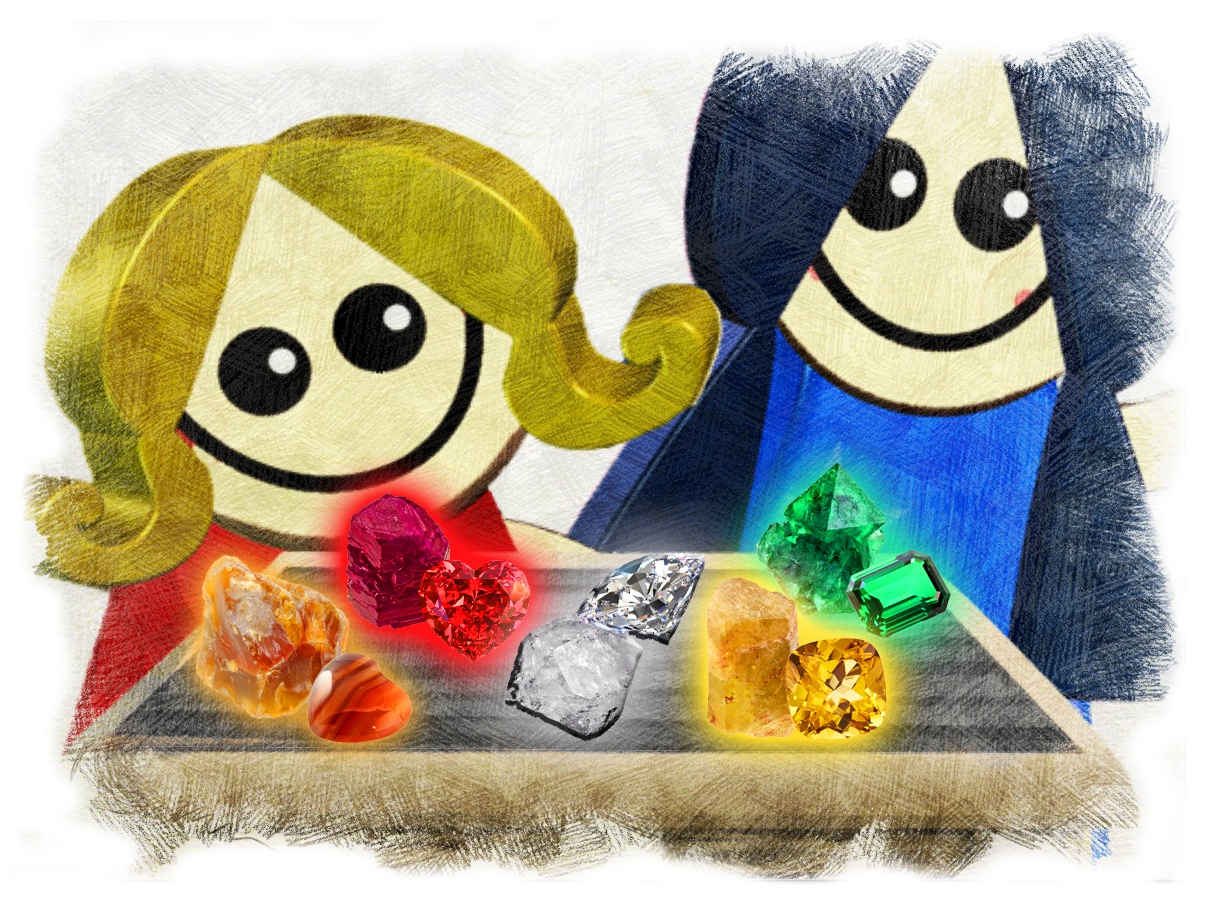 Алмазы, гелиодоры, рубины, изумруды, сердолик
