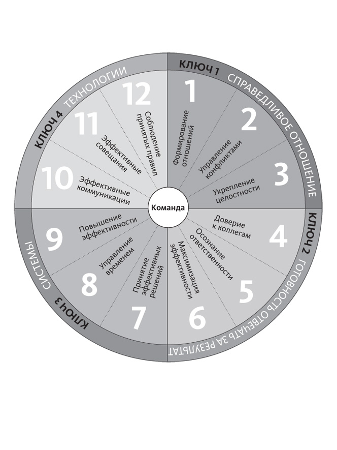 Наиболее продуктивные команды владеют четырьмя особыми ключами, позволяющими добиваться роста эффективности. Каждому из этих ключей посвящена одна из частей моей книги. Перечислим их: справедливое отношение, готовность отвечать за результат, системы, технологии. Эти четыре фактора чрезвычайно важны для обеспечения продуктивности работы в современном мире.