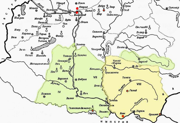 В 154 км. (4 днях пути) от него город Ковин (Кеве), рядом города Белоцерква и Вершец. В 154 км. от Ковина на Дунае – Нови-Сад (часть Стариград) (город был основан в 1694 году, но полностью уничтожен в 1848 году), на расстоянии 4 дней пути по реке Саве находятся Славонские города Шабац и Ярак, рядом Срем.