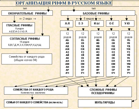 Таблица из – «Словарь разновидностей рифмы» В. В. Онуфриев