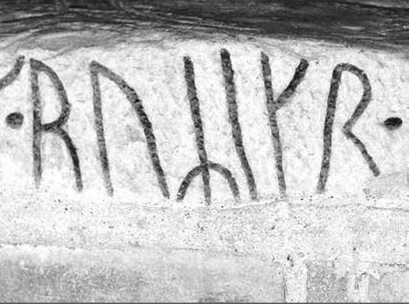 Ім’я ruRikr на фрагменті рунічного каменя, використаного для будівництва церкви Норрсунде (Norrsunda), Уппланд, Швеція