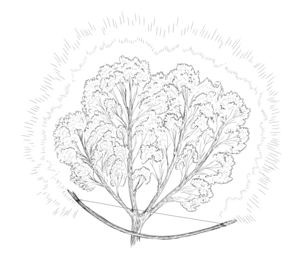 Промолчал Илья. Ушёл в поле хмурый. Там он к кусту посередь поля вышел. Сломал золотую ветку, тетивой стянул, а из малой веточки сделал стрелу лёгкую, но крепкую. А на следующий день на рассвете стрелу в небо выпустил. Не вернулась золотая стрела.