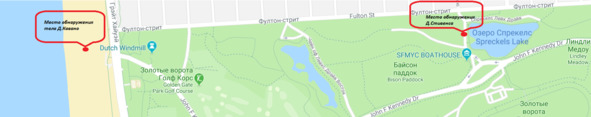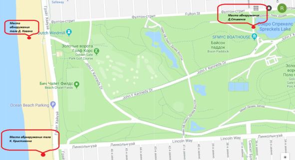 На карте прекрасно видно, что первые два тела жертв связаны со знаменитым «Золотым парком «Сан-Франциско.