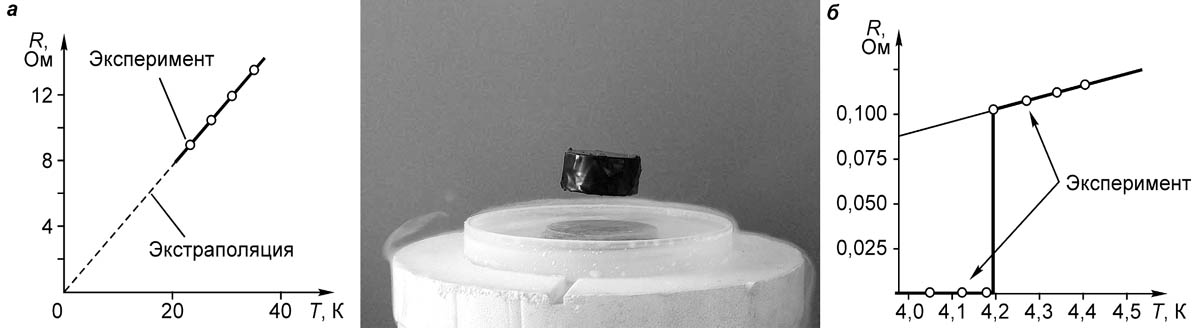 В 1908 году голландский физик Хейке Камерлинг-Оннес сумел получить жидкий гелий и довести его до температуры 1 К[10]. С помощью него он изучил электрические свойства металлов при низких температурах. В 1911 году он неожиданно обнаружил, что при температуре около 4 К сопротивление ртути резко спадает до нуля. Так было открыто явление сверхпроводимости. То есть теоретическая экстраполяция оказалась неверной. Впоследствии было открыто множество других сверхпроводящих веществ, в том числе проявляющих эти свойства при достаточно высоких температурах (60 К, 78 К и даже 166 К), что дает возможность использовать сверхпроводники в различных сферах человеческой деятельности.