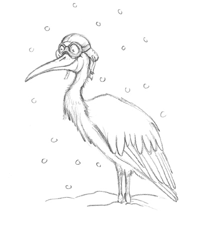 Вдруг на поляну спустился аист Капитан Небо и тут же погрузился в сугроб до самых колен.