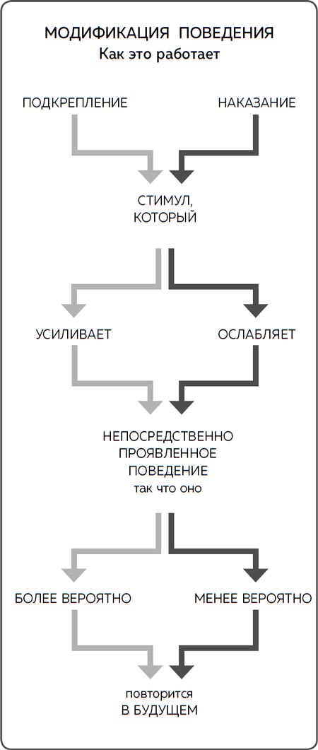 Данное представление об отрицательном и положительном не имеет ничего общего с сопоставлением плохого и хорошего. Отрицательное означает забирать; положительное – давать. Таким образом, положительное подкрепление означает дать подкрепление или поощрение. Отрицательное подкрепление означает не дать этого поощрения.