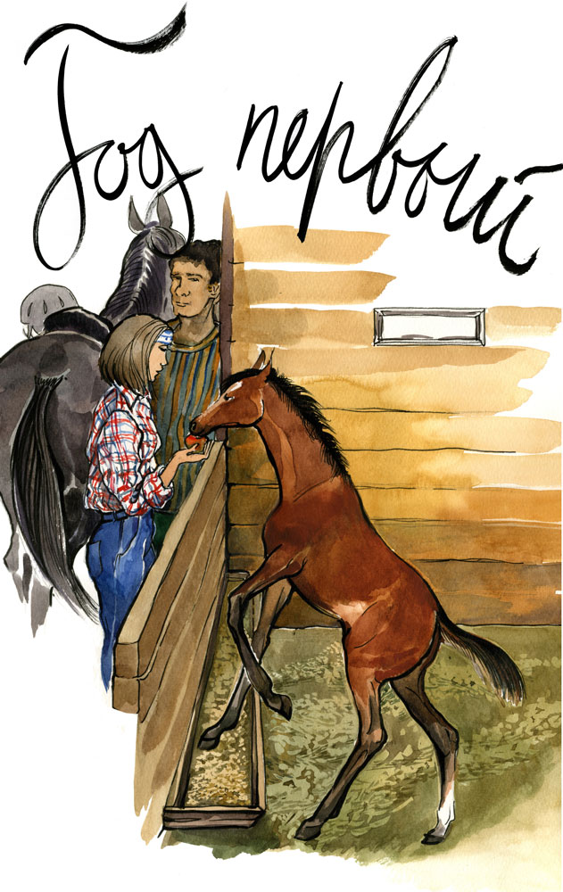 «Видимо, так и придётся проторчать всю жизнь в четырёх стенах», – думал жеребёнок. Единственное развлечение – смотреть на проходящих мимо денника лошадей и людей. Но и это непросто – приходится привставать на задние ноги, опираясь передними на дверь, чтобы хоть что-нибудь увидеть.