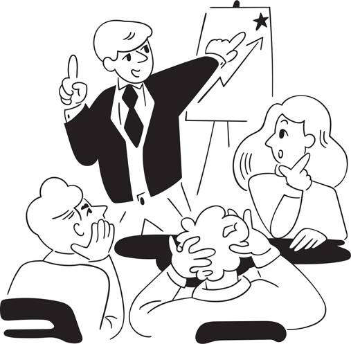 Приведенный фрагмент дискуссии прекрасно показывает, в чем ключевая роль процедурного фасилитатора и какова его самая сложная компетенция: фасилитатор должен уметь очищать высказывания участников от эмоций, наслоений и побочных ветвей и переформулировать их максимально четко и лаконично, встраивая в единую логику обсуждения. И это очень сложная интеллектуальная задача. К примеру, когда Иван говорит об отсутствии ISO 9000, он подразумевает неготовность конкурировать на рынке Европы но его мысль запрятана, и фасилитатор должен ее откопать и предъявить группе. Еще сложнее расшифровать мысль Петра: на первый взгляд, он утверждает, что внедрение ISO невозможно, и только очень умный фасилитатор догадается проинтерпретировать его высказывание как тезис про то, что Европа является стимулом для внедрения ISO.