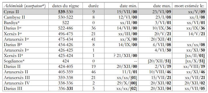 – Согласно сообщению Геродота и Евсевия правление Дария продолжалось 36 лет, Птолемей отводит ему 35 лет правления. Его преемник Ксеркс по Геродоту и Птолемею правил 21 год, а по Евсевию – 20 лет. Эти цифры (36 лет и 21 год) на настоящий момент считаются общепринятыми. Однако в данном случае все не так однозначно как кажется. Ряд античных авторов указывают для этих персидских царей иную продолжительность правления. Так Ктесий отводит Дарию 31 год правления, а Ксерксу – 26 лет.