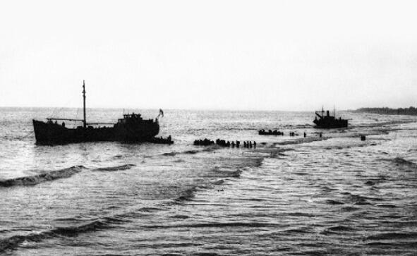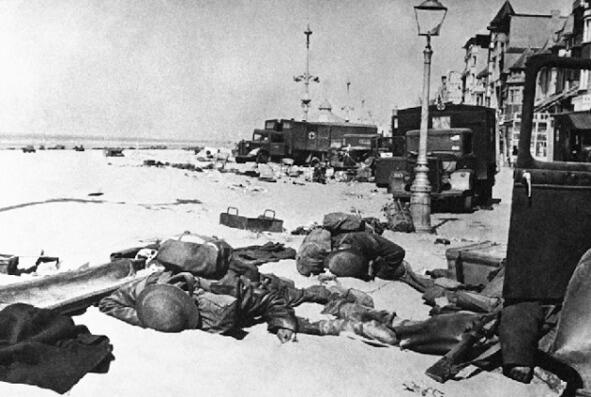 Miejsca bitew są przenoszone do francuskiego Dunkierki. Promocja niemieckiej Panzerwy jest zrujnowana przez nierówny teren. Nie starają się też wejść do strefy brytyjskiej artylerii okrętowej. Otoczeni przez wojska angielsko-francuskie, wykorzystując pogodę, która zakłóca działania lotnictwa, są ewakuowani drogą morską, pozostawiając wroga z całym ciężkim sprzętem. Pomysł stworzenia trampoliny, ciernia w ciele kontynentalnej Europy, nie jest brany pod uwagę. Fotografia ewakuacja brytyjskich żołnierzy na statkach zbliżających się do brzegu. Dunkierka, czerwiec 1940 r