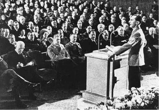 Для укрепления монопольной власти над кинематографией Третьего рейха Геббельс использовал свои полномочия шефа пропаганды в аппарате Национал-социалистической немецкой рабочей партии (НСНРП). Подчиненное ему Партийное управление пропаганды (Reichspropagandaleitung) имело собственный отдел кино. При этом вскоре было создано еще одно учреждение, игравшее едва ли не главную роль в «процессе объединения» немецкой кинематографии под руководством ее «заступника и покровителя» (Der Schirmherr des deutschen Films) Геббельса. Как и для других областей культурной жизни, для кино была создана «цеховая организация», в принудительном порядке объединявшая всех работников отрасли. Таким органом стала Имперская палата кинематографии (Reichsfilmkammer), входившая в состав учрежденной Геббельсом Имперской палаты культуры[4]. Созданная еще в июле 1933 года[5] и затем претерпевшая ряд изменений, она включала в себя ряд организационных структур, которые занимались решением большинства вопросов, связанных с функционированием всех сфер кинематографии. В Палату кинематографии были вынуждены войти продюсеры, режиссеры, актеры, прокатчики и представители других сфер. Сама возможность найти работу, связанную с кино, зависела от членства в этой организации. При этом в палату принимали, руководствуясь не только уровнем квалификации и профессиональной подготовки, но и критериями «расы» и национальности. С 1 июля 1933 года в кино было запрещено допускать тех, кто не являлся «арийцем», кто состоял в браке с евреем или еврейкой, а также иностранцев, не имевших немецкого паспорта. Впрочем, до начала войны эти предписания не всегда соблюдались. Геббельс оставлял за собой право выдавать специальные разрешения на работу в кино гражданам других стран или тем, кто подпадал под так называемый «арийский параграф». Бывало и так, что сам Гитлер приказывал «рассматривать как арийцев» тех или иных актеров еврейского происхождения.