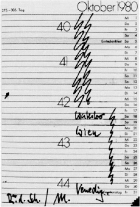 К осени второго года заключения приготовления Казановы продвинулись столь далеко, что побег мог быть осуществлен. Время удобное, поскольку инквизиторы на днях отправляются на terra firma, на материк, а Лоренцо, надзиратель, ввиду отсутствия начальства со знанием дела предается пьянству. Чтобы выбрать точный день и час, Казанова обращается к поэме Лудовико Ариосто «Orlando Furioso»[15], составляя запрос по системе наподобие sortes virgilianae[16]. Сначала он записывает вопрос, на который ищет ответа, затем из чисел, исчисленных по словам, составляет перевернутую пирамиду, а потом, трижды совершив операцию по вычитанию числа 9 из каждой пары цифр, получает первую строку седьмой строфы девятой песни «Orlando Furioso», которая звучит так: «Tra il fin d’ottobre e il capo di novembre»[17]. Столь точное указание для Казановы – тот самый знак, которого он ждал, ибо, по его представлениям, неопределенность огромного множества условий неподвластна даже самому ясному разуму, однако Закон действует и ему следует подчиняться. Описанный опыт Казановы подтолкнул и меня к произвольной, на первый взгляд, попытке измерить неведомое сходной игрой слов и цифр; я обратился к собственному календарю и, к своему удивлению, вернее ужасу, обнаружил, что тот день 1980 года, когда я читал заметки Грильпарцера, сидя в баре на Рива-дельи-Скьявони между отелем «Даниэли» и церковью Посещения Девы Марии, а значит, совсем недалеко от Дворца дожей, пришелся на последний день октября, иными словами, был годовщиной дня или, скорее, ночи, когда