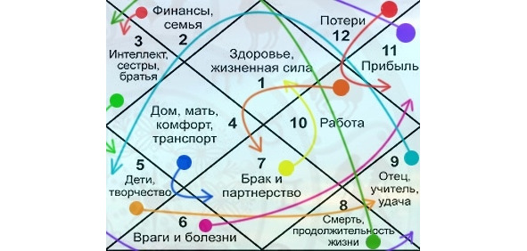 Истинность этого утверждения наглядно можно увидеть на рисунке показывающем взаимосвязь центральных домов гороскопа.