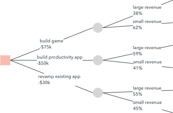 Expected Monetary Value (EMV) for each alternative should be estimated. It mostly consists of the sums of the winnings estimates to be multiplied by the likelihood of the winnings realization, for all possible options.