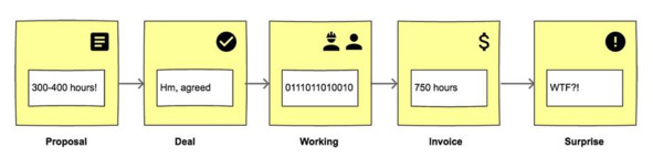 An important element in IT management within a software development project is to estimate the time required for product development. This issue is relevant in the solution development by both: internal resources and outsourcing. A classic example is shown in the diagram.