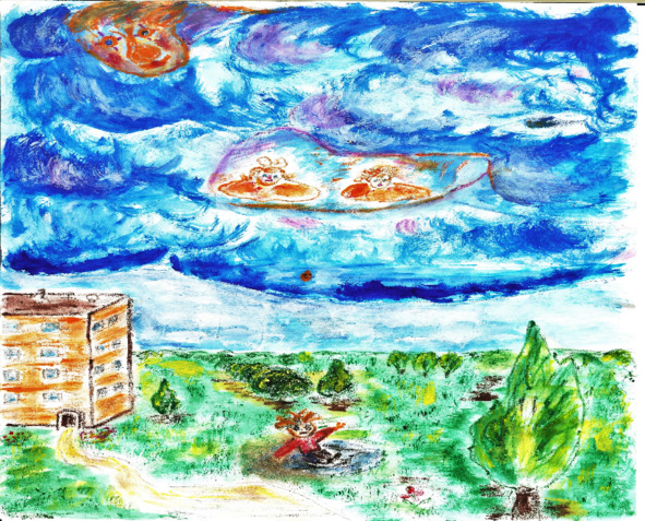 Иногда Бучка и Бучик с родителями прилетали на край тучи Бучи-Кручи и наблюдали за происходящим на земле. Они видели и слышали, как там, внизу, играют дети, как они прыгают, смеются, друг друга догоняют, и замечали даже тех, кто капризничает. Однажды Бучка сказала брату: