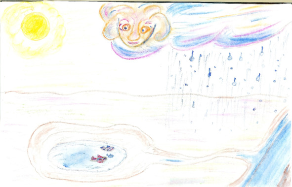 – Очень просто. Раньше мы свою водичку тратили на разные вредности, а сейчас будем по капельке с нашей улыбкой отправлять на землю тем, кто капризничает, плохо себя ведёт, плачет. Капельки попадут в глазки детям, и они станут добрыми, послушными, весёлыми.