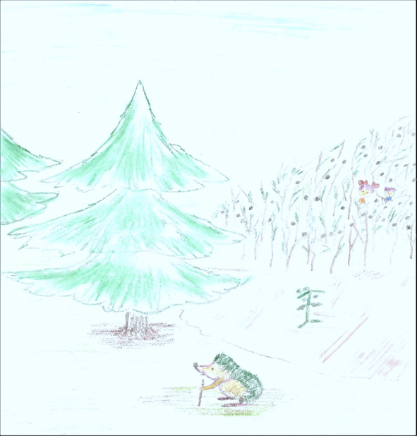 – Эта дорога ведёт на холм, где растёт «Е»жевика, и мы сейчас пойдём туда, чтобы набрать ягод для милых попрошаек.