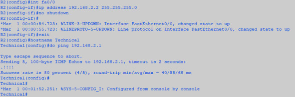 Те же самые настройки сделаем и для остальных маршрутизаторов в нашей сети. Вдобавок назначим имя устройству и совершим проверку соединения с маршрутизатором Admin путем использования команды ping. Приведем пример настройки маршрутизатора Technical (рисунок 27):