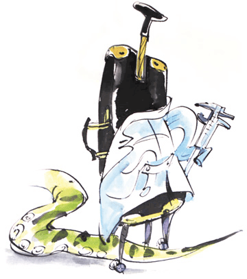 – Если быть точным – длинную анаконду, которая только что съела двадцать свежих котлет.