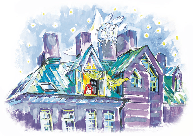 И большой-пребольшой чемодан рассказал ей, что он сделал открытие: в большой-пребольшой чемодан вмещается спящая анаконда. А скоро он выяснит, сколько ежей вмещается в чемодан. Причём не простых, а морских. У них колючки длиннее.