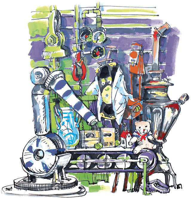 Большой-пребольшой чемодан, чёрный, с секретным замком, на четырёх колёсиках, жил в отдельной квартире многоэтажного дома и ходил на работу. Большой-пребольшой чемодан был настоящим учёным и изучал вместимость очень больших чемоданов: он помещал в себя разные вещи и смотрел, что из этого выйдет.
