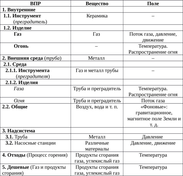 Таблица 4. Выявление вещественно-полевых (ВПР) ресурсов