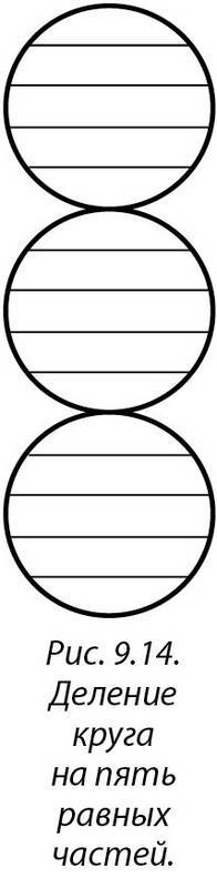 Тот показал мне гениальный способ построения этого рисунка без замеров и расчетов. Вам нужны лишь линейка и циркуль. Он сам показал мне, как это делается, сказав, что данный метод сбережет массу времени (см. инструкции к рис. 9.15 под ним).