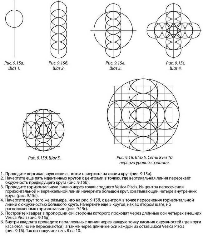 Наверное, настало время сделать некоторое отступление и пояснить кое-что о сакральной геометрии – вам необходимо это понять, если вы решили изучить сей предмет. Когда вы сидите в аудитории и смотрите на фигуры сакральной геометрии или читаете о них в этой или какой-то другой книге, пассивно воспринимая все это, то вы впитываете очень малое количество информации, идущей от рисунков. Но если вы садитесь и сами начинаете рисовать, буквально строить их, то с вами что-то происходит, что-то намного большее, чем когда вы просто смотрите на них. Любой, когда-либо проделавший это, скажет вам то же самое. Это один из главных постулатов масонов. Когда вы физически прорисовываете линии, происходит нечто сродни откровению. Вы рисуете круг – и начинаете понимать. Что-то меняется внутри вас. Вы начинаете понимать на очень, очень глубинном уровне, почему все сделано таким, как оно есть. Думаю, ничто не заменит личного воспроизведения этих рисунков.