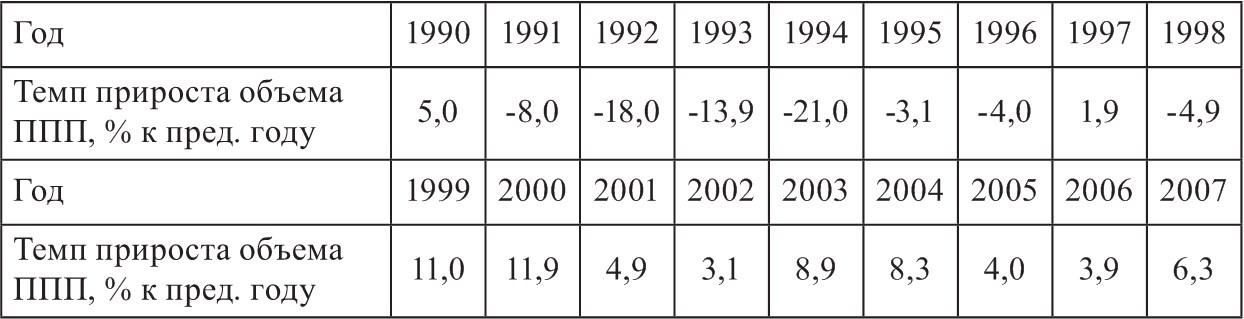 Динамика объема производства промышленной продукции