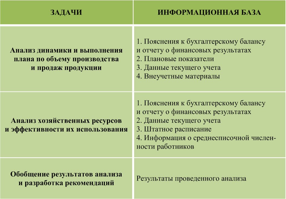 Задачи и информационная база анализа хозяйственной деятельности